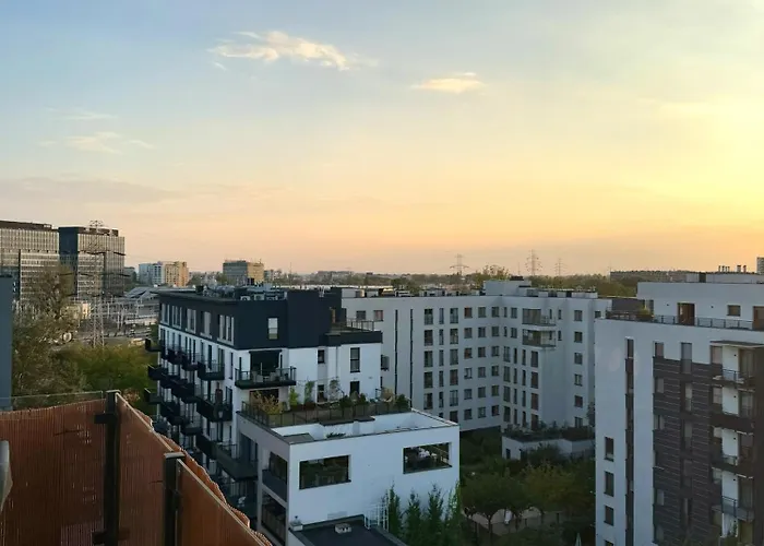 The 33 m² Centrum One Apartments Warsaw is approximately 25 minutes' walk from the large park "Mokotow Field". The apartment features a terrace that overlooks the city.